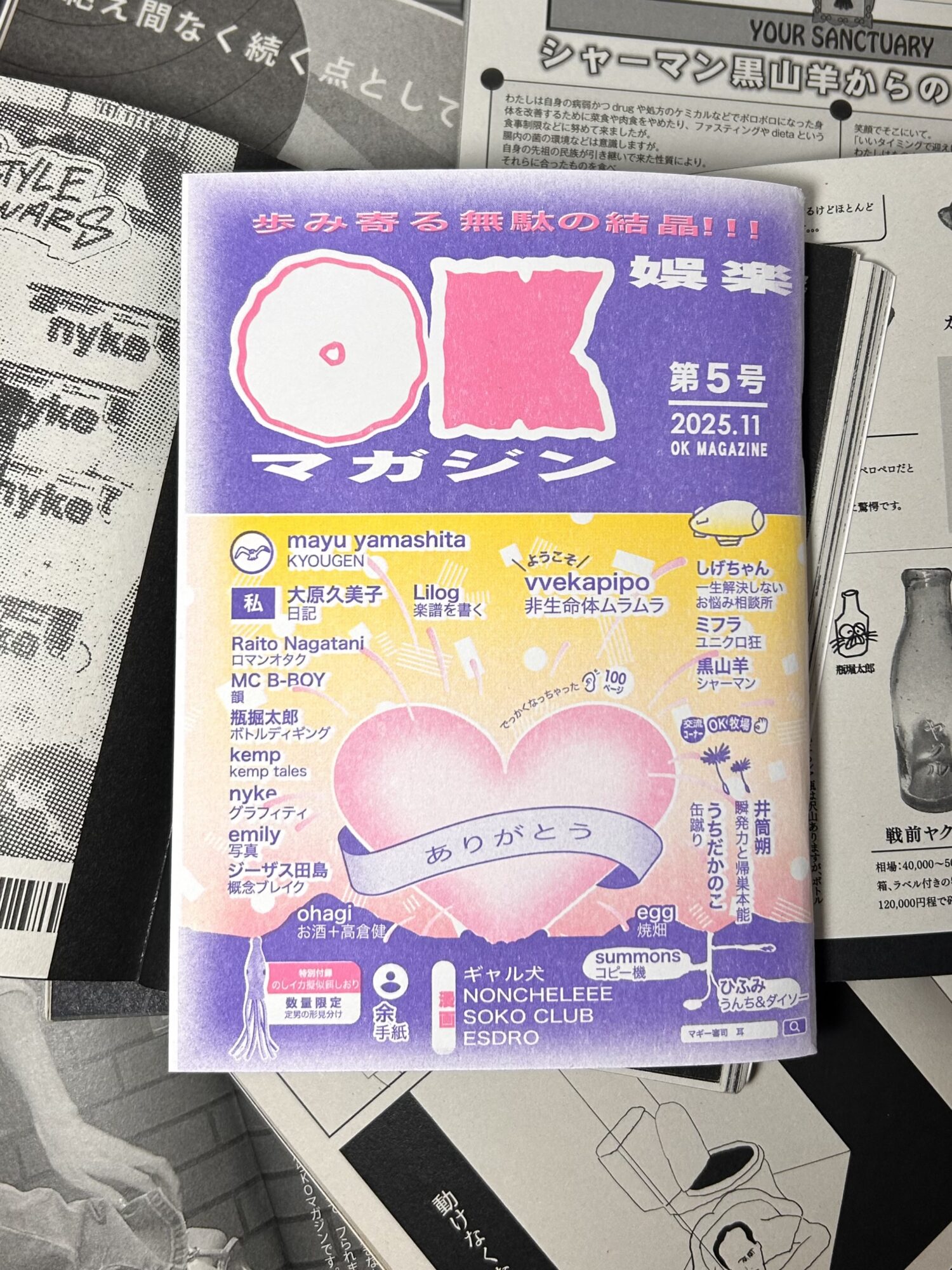 OKマガジン 私たちは久留米を拠点に活動しているオルタナティブカルチャー誌です。半年に一回、無駄をテーマに様々な寄稿者からの記事をまとめ発行しています。昨年はOVER GROUNDにてOKマガジンFESを開催。